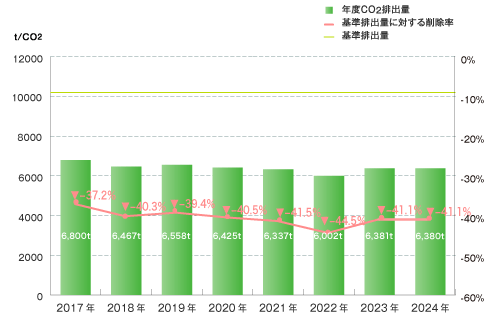 | 当年度削減率 | 49.5% | 50.3% | 45.5% | 36.8% | 42.1% | 40.2% | 49.3% | 51.3% | 46.4% | 46.4% |
