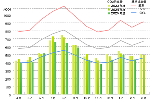 神保町三井ビルディングにおけるエネルギー消費によるCO2排出量について、東京都の地球温暖化対策にしたがい、各種のCO2排出量削減に取組んでおります。テナントの皆様におかれましては、 今後もCO2排出量削減のため省エネルギー活動へのご理解並びにご協力を賜りますよう、何卒よろしくお願い申しあげます。